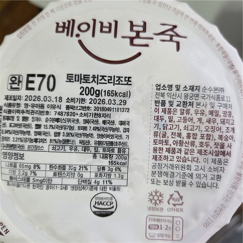 아기 살도 잘 안쪄서 걱정이었는데 베이비본죽 식단을 주문후에는 포동하게 살도 오르고 아주 귀여운 아기가 되어가고 있습니다.
