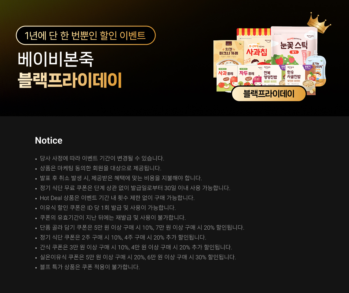 베이비본죽에 찾아온 블랙프라이데이, 최대 53% 할인🖤